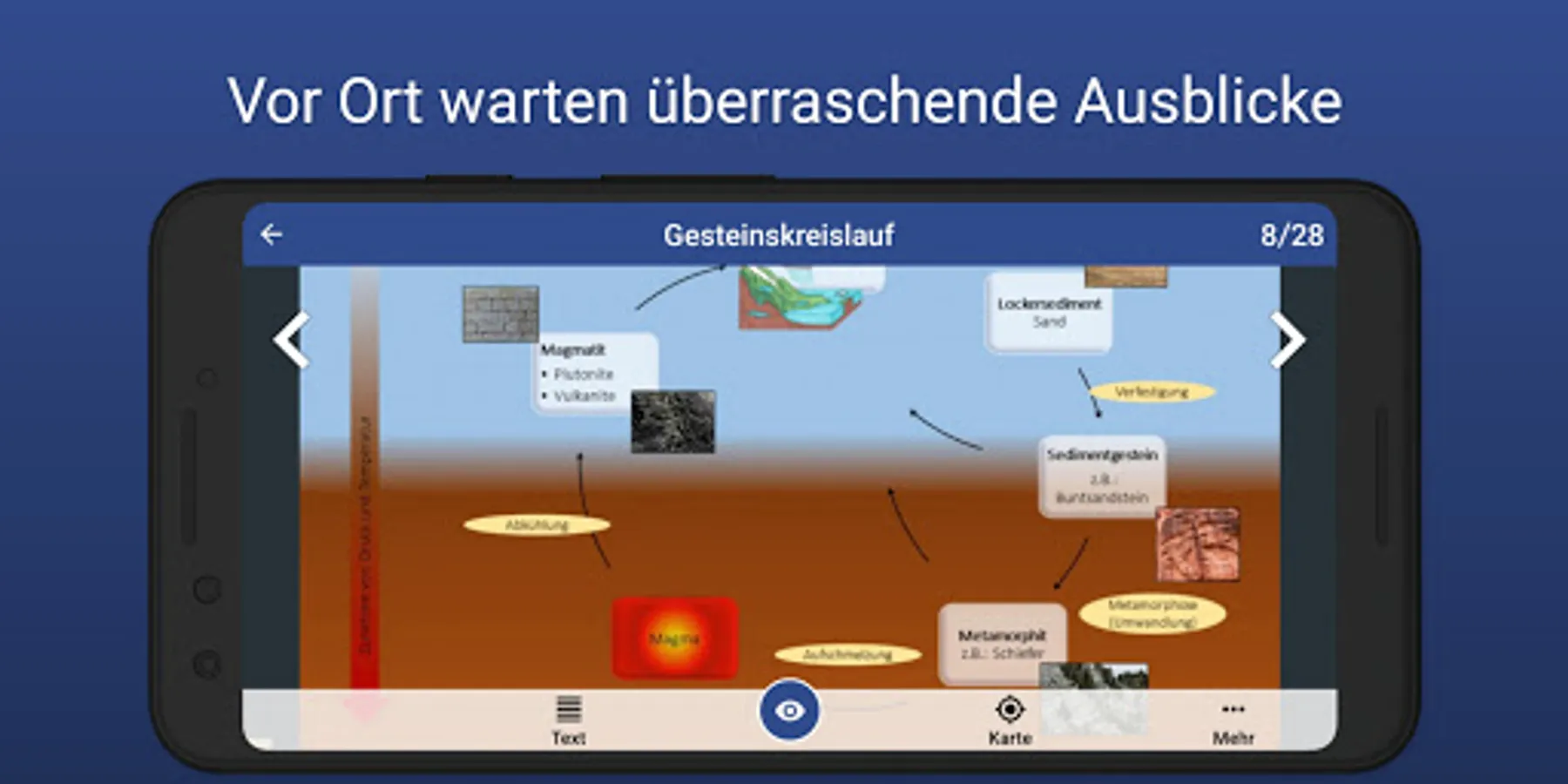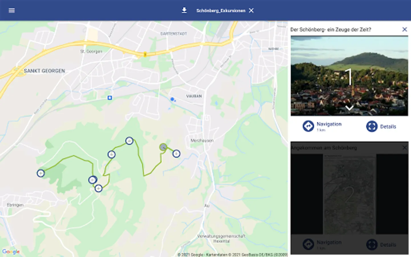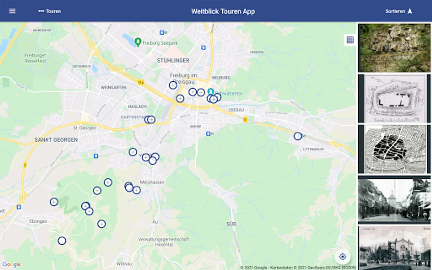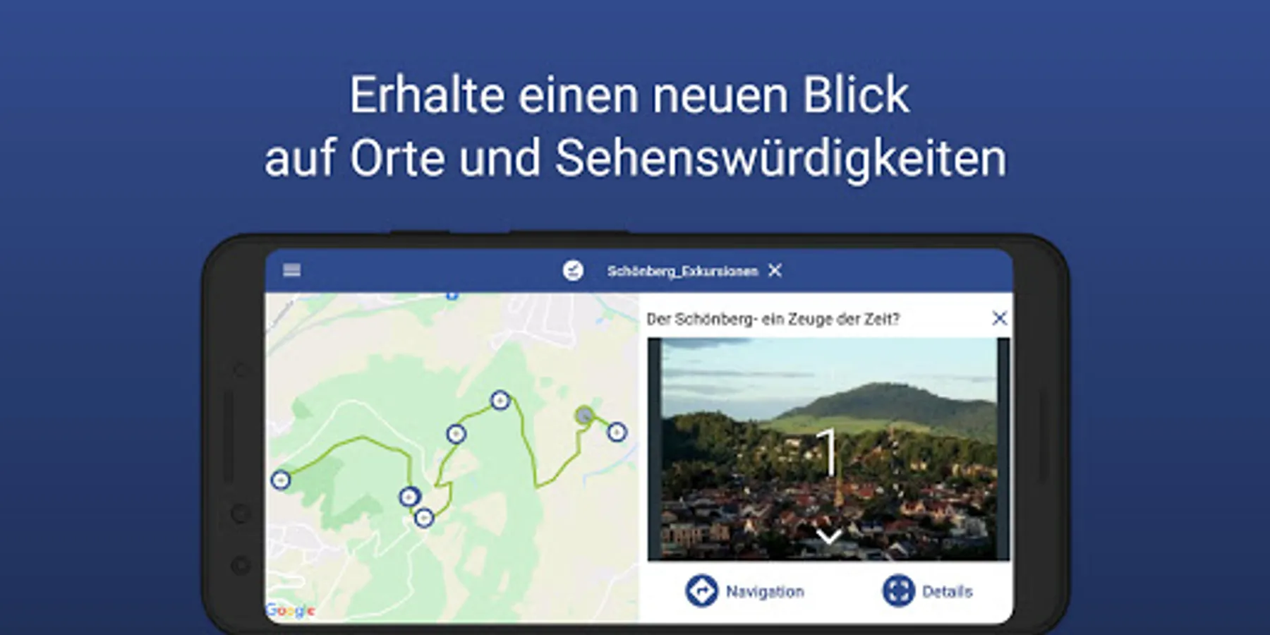 When you open the app for the first time, you will see an overview of all the themes and tours included in the Weitblick app. Find the theme and tour of your choice or scroll down and select Discover All Places.