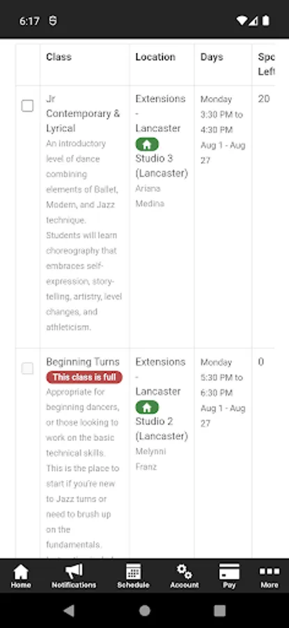 Our upper level classes may not be available for online registration. However, if you are an experienced dancer with a high technical prowess you may contact our front desk to get help unlocking those classes. An in person evaluation may be necessary before we can open those classes for enrollment.