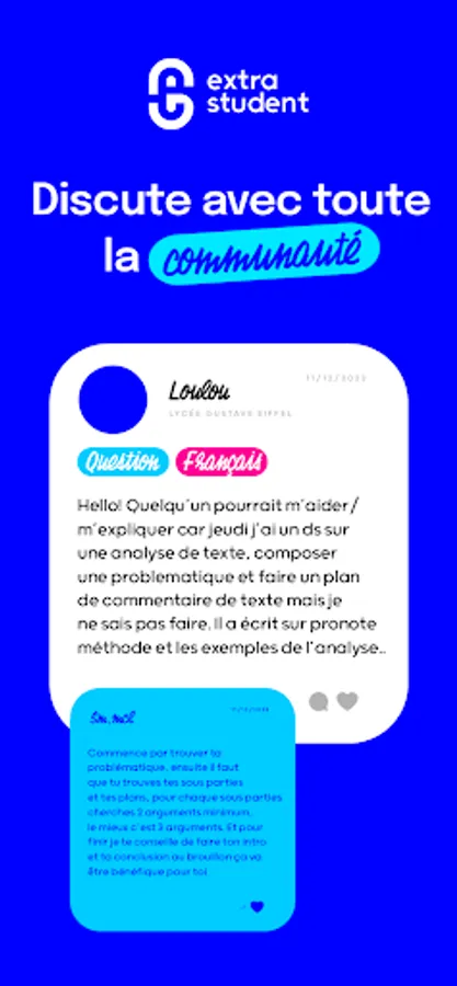 The extrastudents (application users) can benefit from thousands of documents (study guides, presentations, homework…) to study from, a strong community of tight-knit students who can provide answers to their questions as well as help from college students with orientation. They can also contribute by posting their documents and engaging on subjects of their choice (topics of interest,... )!