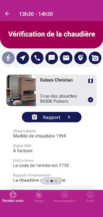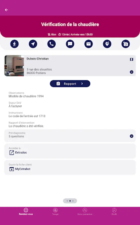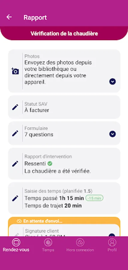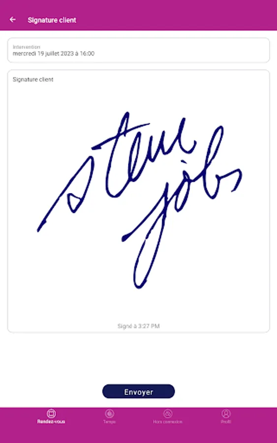 You can enter your appointment notes, and for after-sales or service type appointments, you can fill out the form, enter the intervention report and have it signed by the technician and the customer. And all this is even possible offline.