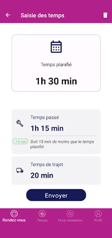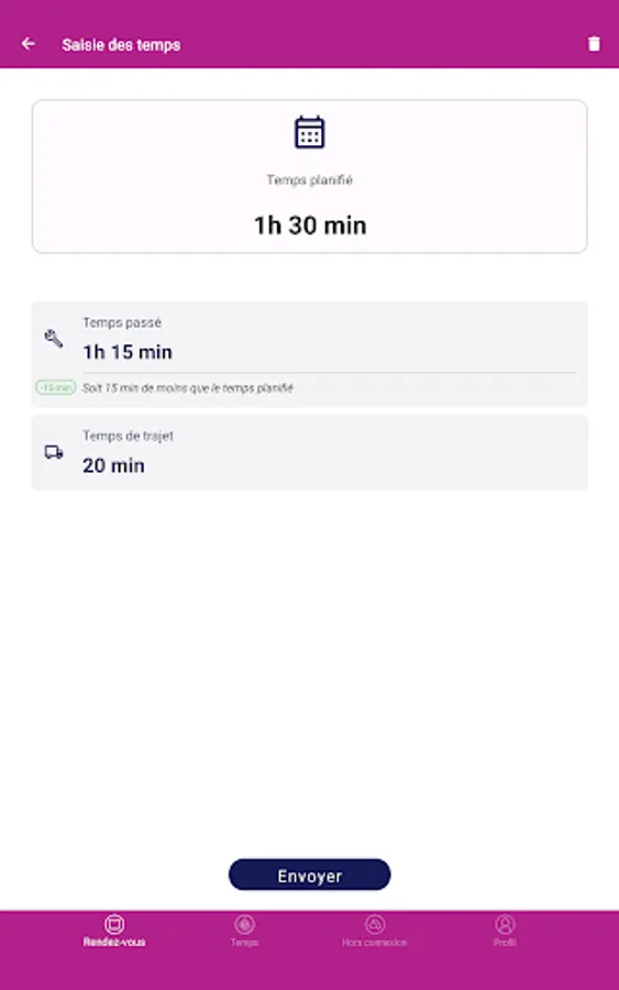 Notify your client by SMS or email of your arrival time with the "I'm leaving..." button.