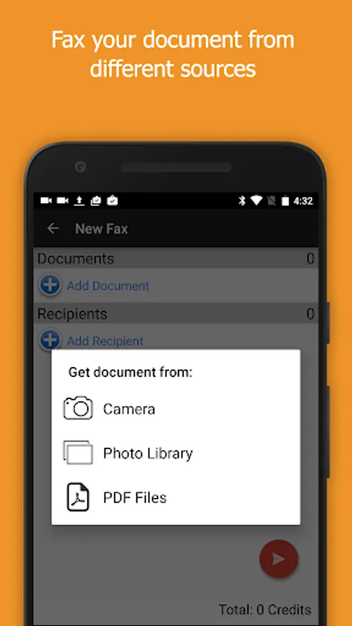 - Snap to fax: Scan and fax your hardcopy document with Snapfax's advanced scanner (built-in camera).