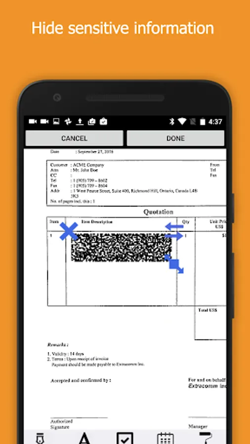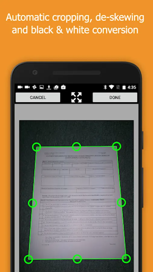 - Advanced document scanner with powerful image processing (e.g. auto corner and border detection, perspective correction, black and white conversion and shadow elimination)