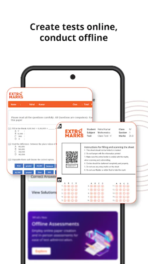 The Extramarks online Teaching app helps you conduct online live classes with automated attendance, record lectures, engage students using the readymade content repository of animated 2D and 3D videos, create tests & quizzes with extramarks question bank, automate MCQ tests evaluation, share study material & homework, chat with students, and much more…