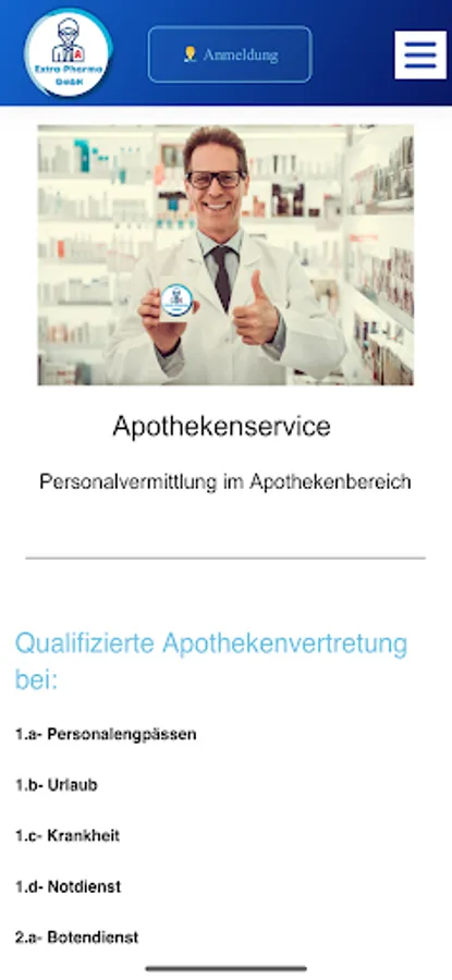 We offer you recruitment in the pharmacy sector. In the event of: - staff shortages - vacation - illness - emergency service. What sets us apart: substitute pharmacist, PTA or PKA, but also the messenger service and cleaning staff.