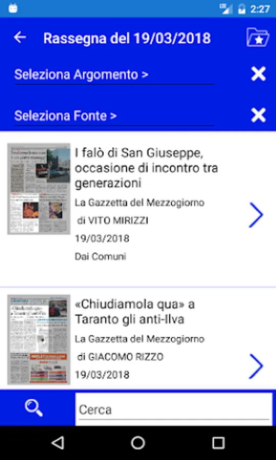 Press review app. It is possible to view news in real time, with the possibility of saving the articles in the 'favorites' to be able to consult them later.