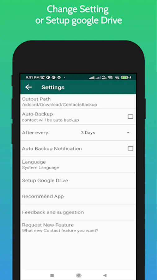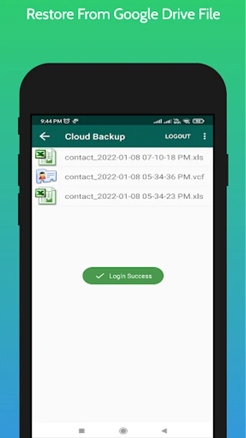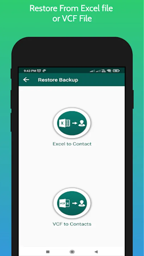 * Easy restore. No application is required to restore the backup file. Just tap the backup file * .vcf or excel file on your Android.