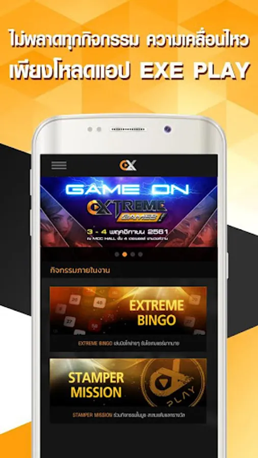 Easy to play, just at the fingertips. Through the "EXE PLAY" app on your mobile phone. Do not miss every activity within the booth. Or the games of the Electronics Extreme.