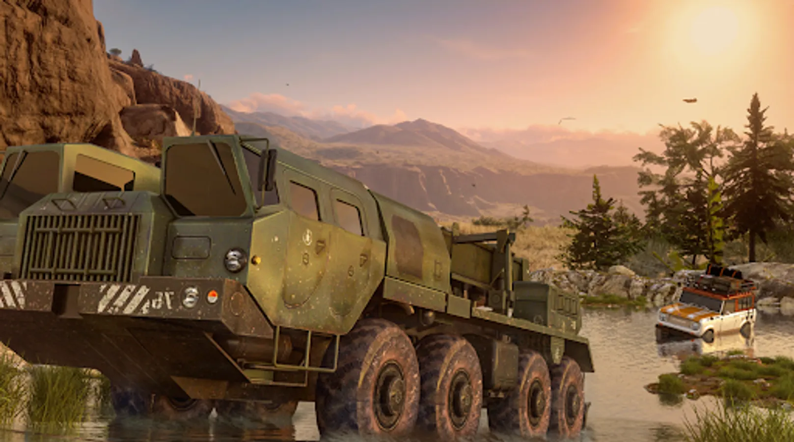 In this off-road racing game or simulation, players can drive a variety of trucks and SUVs through challenging terrain such as mud, hills, and dirt tracks in a mountainous or forested environment. The game, which was released in 2019, features realistic physics for the vehicles and allows players to drive through water and mud. Players can test their skills and navigate through mountain roads and forest trails as they enjoy the thrill of driving through the wilderness.