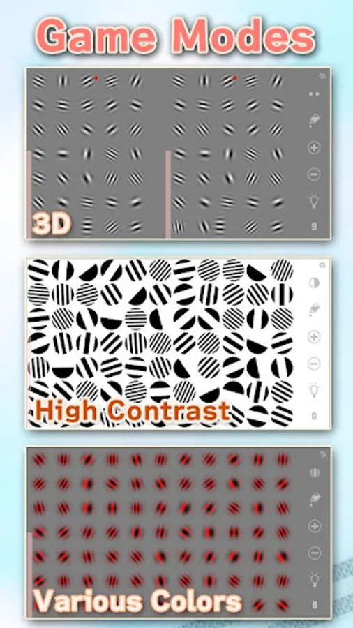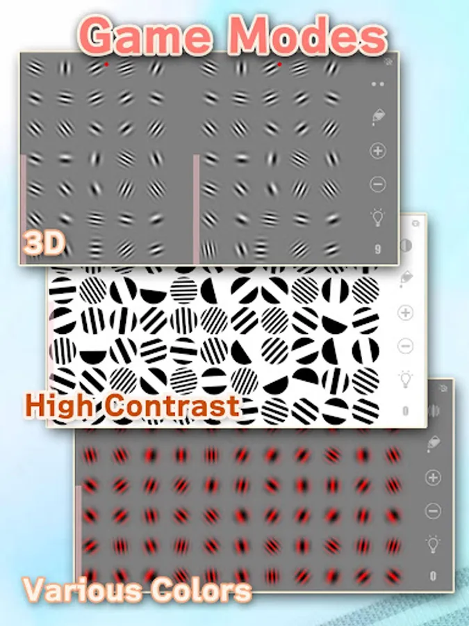 There is prior knowledge that a person's eyesight can possibly be improved by focusing on a pattern called the Gabor patch. By using the Gabor patch and rearranging it in a simple match-3 puzzle, the player can further focus and train for an extended period of time.