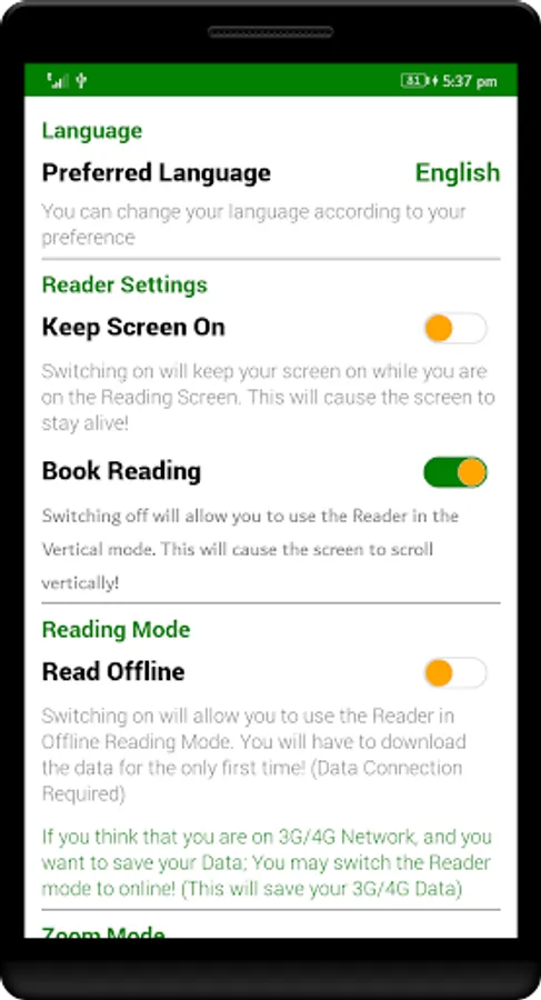 You can also change the reading swipe mode to Horizontal or Vertical in settings.