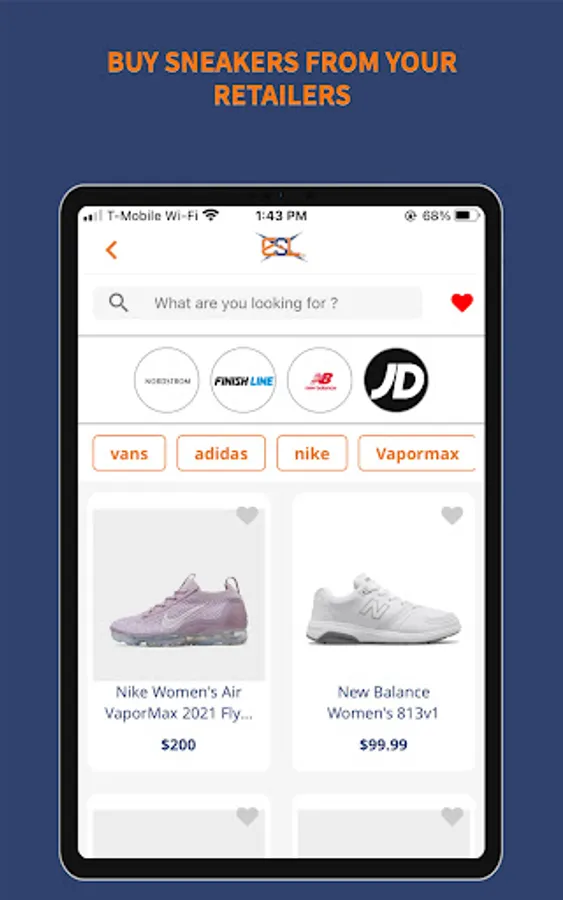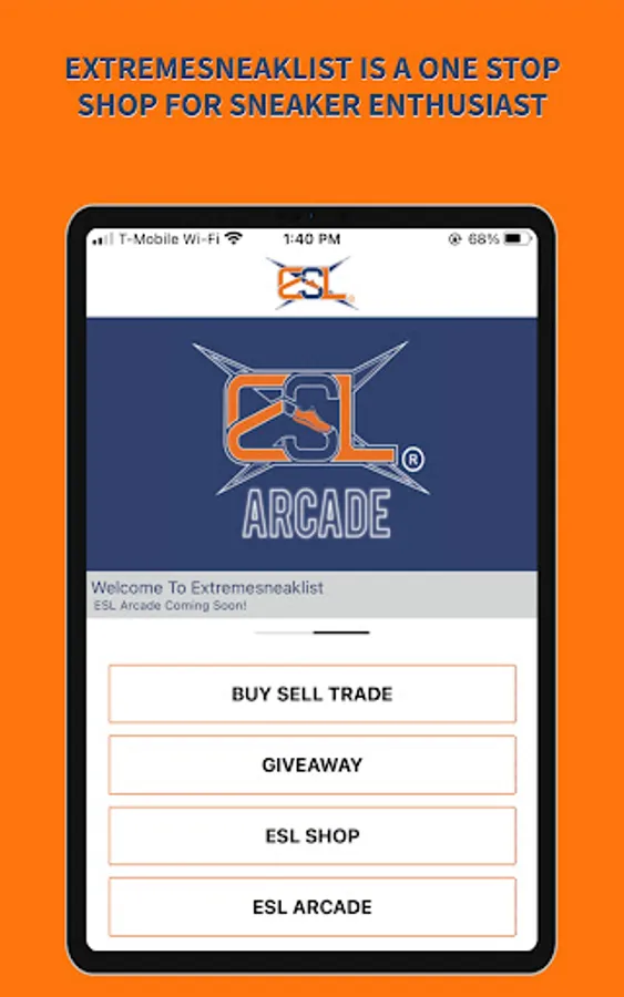 With ESL Shop, you can find exactly the shoes you're looking for in a single spot. Depending on your settings users can find rare releases and exclusive items by the use, ESL is your go-to destination for sneaker shopping. No more endless hours spent searching abroad, running around all over the place to try and get that must-have pair. Just sit back, relax, choose your favorites and have them delivered right to your door with a click of a button. Shopping with ESL Shop is an easy way to keep up with global trendsetters-all without ever leaving your couch
