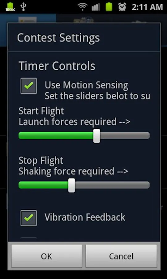 F3K Master uses g-force sensors in the Android device, allowing the software to detect your launch and start the timer for you. Shake the phone to stop the timer when you land.