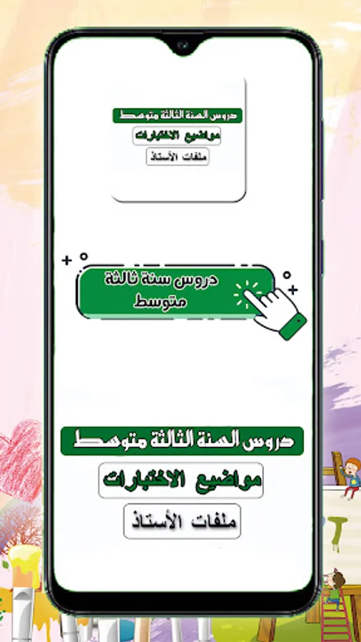 The application of the third year is an average, in which there is everything related to the teacher, the student, and the student’s guardian, the lessons of the third year are average according to the curricula of the second generation, and there are also exercises with solutions, textbooks, notes, reviews, test assignment forms in all subjects.