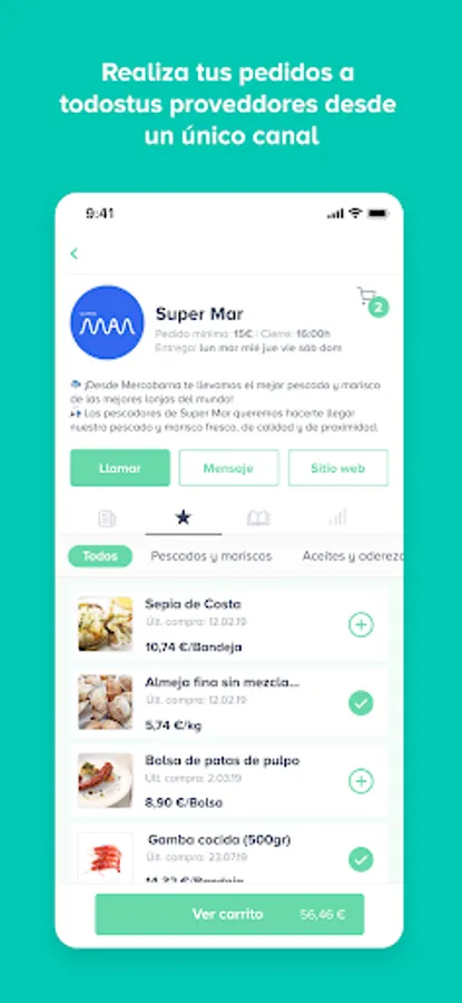 Send your delivery notes to hola@exum.es or a photo by WhatsApp at 722 568 914. Our EXUM team will create your suppliers' stores with the products and prices that you send us in 24-72 hours. Once your suppliers have been activated, they will appear in the 'My Suppliers' section and you will be able to place all your orders while maintaining your purchase conditions: Delivery days / Minimum order / Order closing.