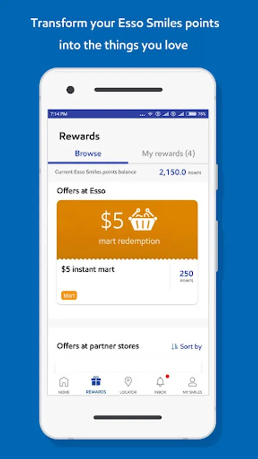 Redeem immediate rewards with app-exclusive eVouchers at any Esso service station or partner stores. You can redeem these eVouchers with an option to use them immediately or at a later date.