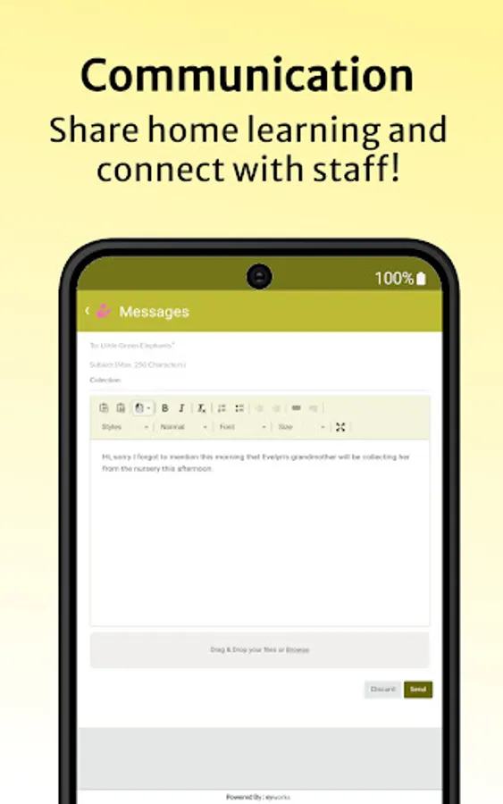 eyparent is a dedicated app that aims to engage parents and help them to understand their child’s development on a more regular and real-time basis, through their child’s learning journey. Nurseries can keep parents informed and involved with comments, home observations, daily diaries, reports, accident/incident sheets and messages. When integrated with eymanage and payment gateways, parents also have a full overview of their account and can view and pay invoices online.