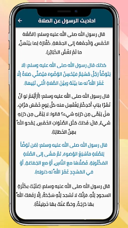 It includes more than fifteen authentic hadiths that can be increased through updates, including: