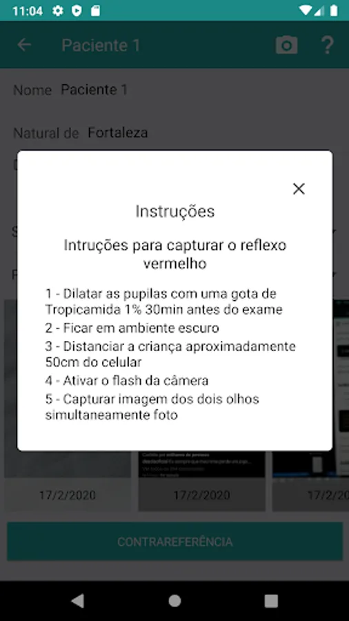The reflection registration can be done via camera or by selecting photos from the gallery. Doctors can analyze the images and select whether the red eye reflex is normal or abnormal. If it is changed, guidance on the referral of the patient to the ophthalmologist is displayed. After consulting with an ophthalmologist and returning the patient, the doctor can feed the patient's file with the ophthalmological diagnosis.