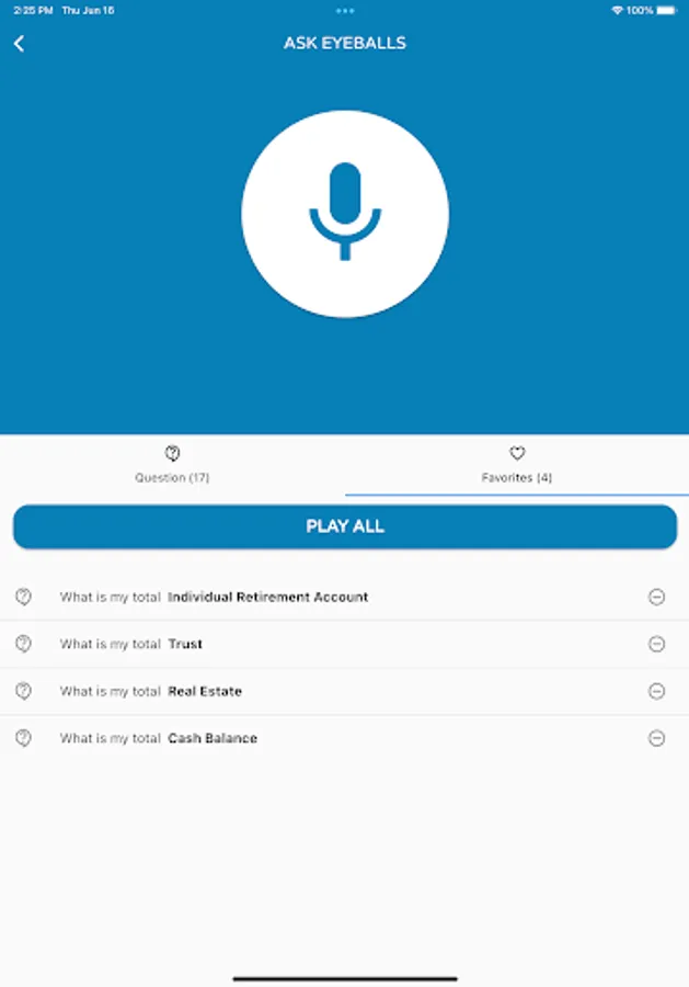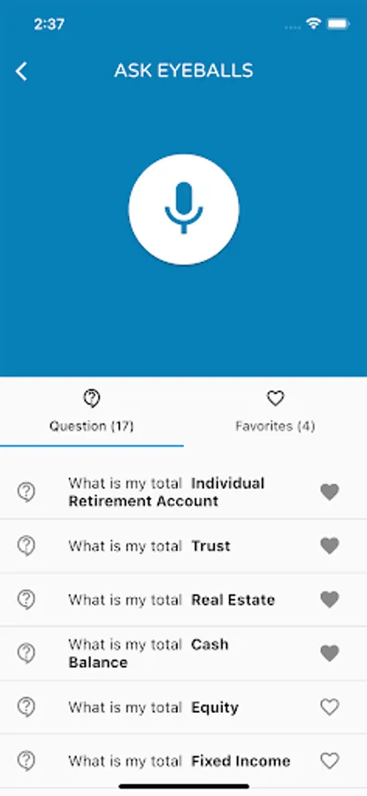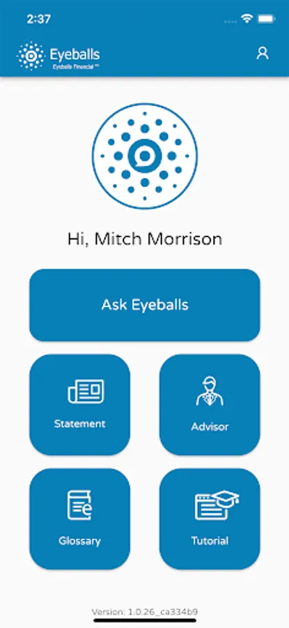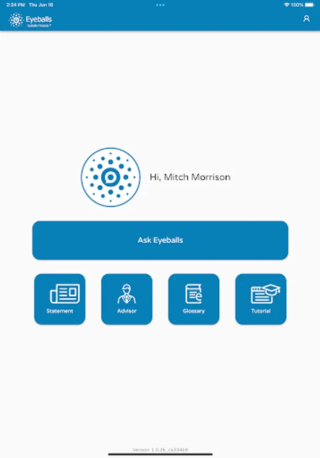 The Eyeballs Financial mobile app is the mobile version of the Eyeballs Financial dashboard that financial advisors access from their web browser.
