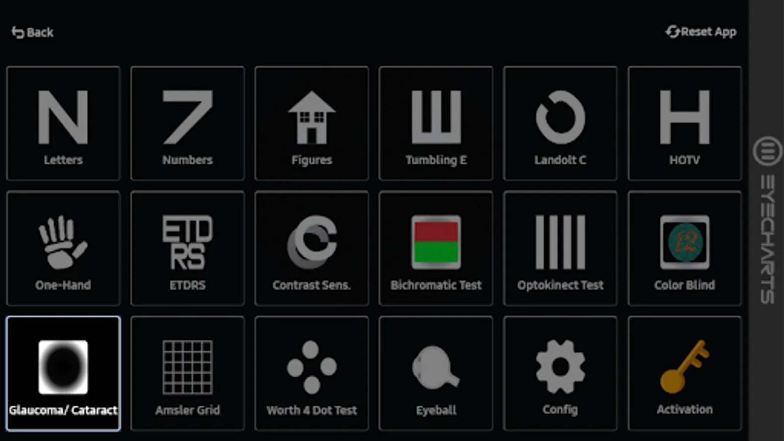EyeCharts is a Visual Acuity App that allows assessment of eyesight at all ages. EyeCharts is a StartUp that provides professional eyesight charts for healthcare professionals from all over the world on Screen Devices.