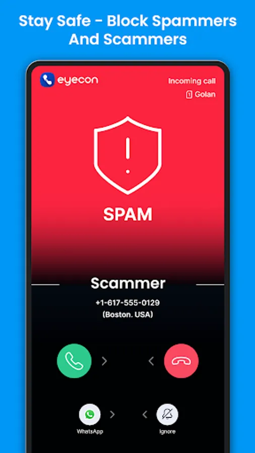 Eyecon turns your contacts + address book into a beautiful, visual gallery of all your friends. You will instantly see names & numbers turn into images of people you really love to see. No need to answer calls you don't know anymore. We can identify the spam callers for you!
