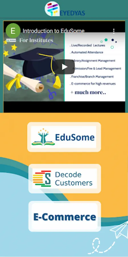EyeDyas UI app aims to help Clients understand the usage of our world class ERP, CRM, E-commerce apps and websites. We have amalgamated human+ technology to create smart and efficient education institutes, retail stores and ecom stores where higher value add could be rendered to stakeholders across value chain.