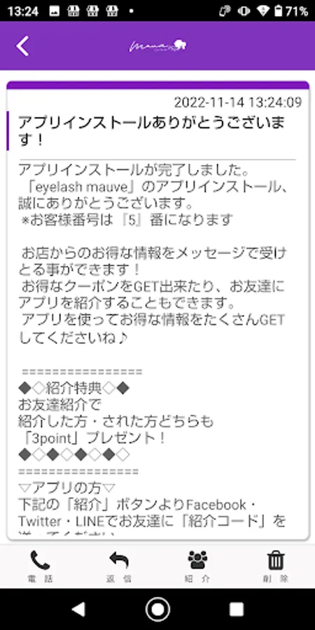 You can introduce the eyelashmauve app to your friends through SNS.