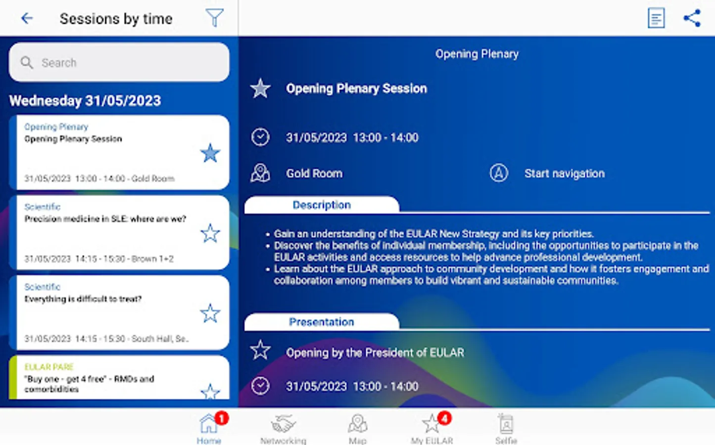 This app is a free companion app for for the participants of the EULAR 2023 Congress in Milan. Participants can log into the app using their on-site congress registration account.