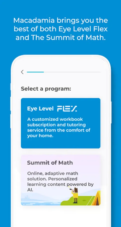 Macadamia brings you the best of both Eye Level Flex and The Summit of Math. Whether you are looking for monthly learning materials, 1-on-1 tutoring, or a personalized AI-based curriculum - Macadamia has it all!