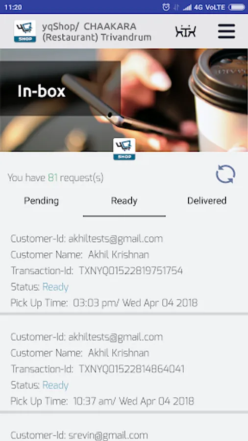 Using this app, shopkeepers can view the list of orders the user requested, the pickup/delivery information.