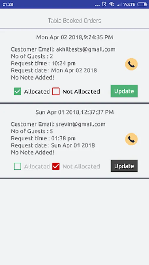 Step5: If you run restaurant, You can also manage you table reservation list using yqshop app.