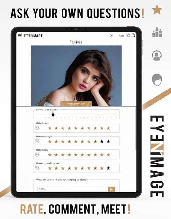Would you like to change your image, style, body shape? You can get help from portal users and professional consultants. Ask them any question with any photo. You will receive ratings and comments that will help you improve your image, get to know someone, or to have a makeover.