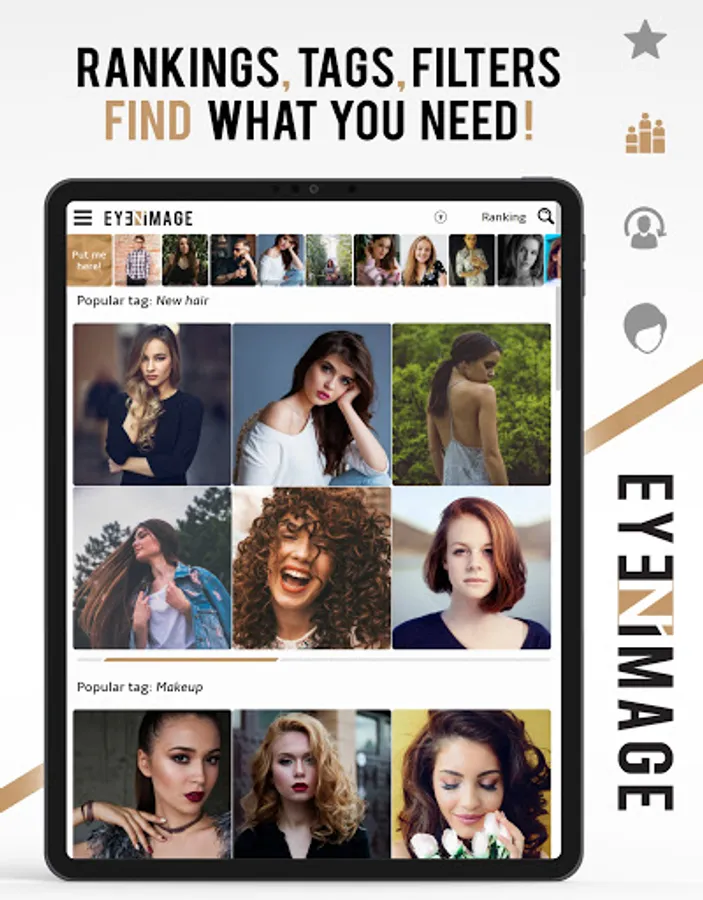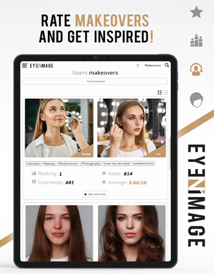 EYENIMAGE provides many inspirations. Each photo, profile and makeover contains tags. Filters let you find any context about the image, eg New Year's makeup or changing the hair colour.