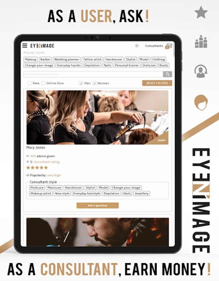 They are experts who will help you change your image. Write your question to all of them at once and receive the answer in 15 minutes, or report directly to the one with the best ratings. Find them on the basis of styles that they deal with.