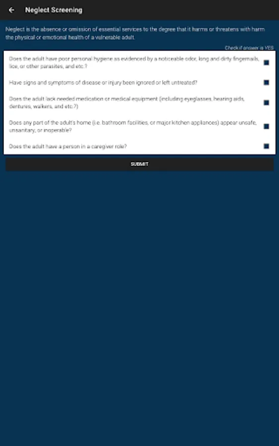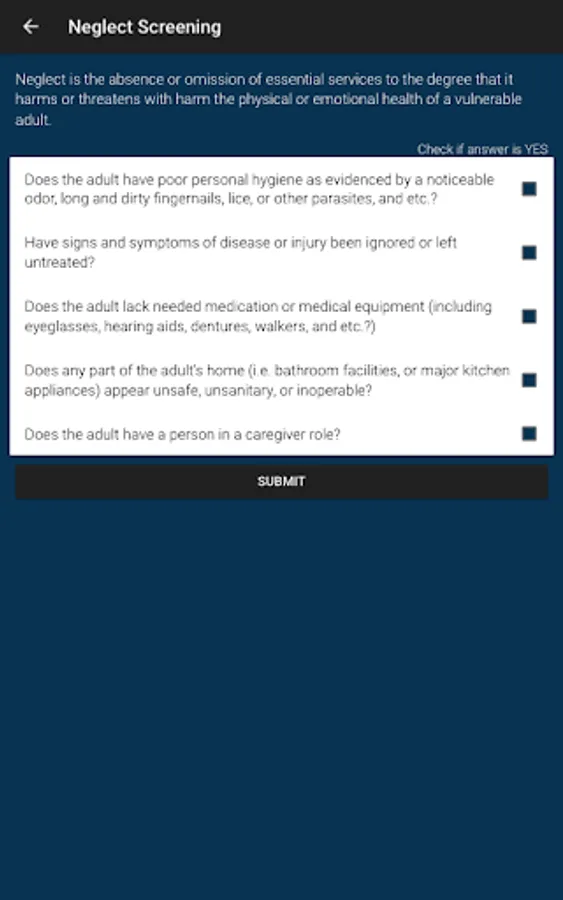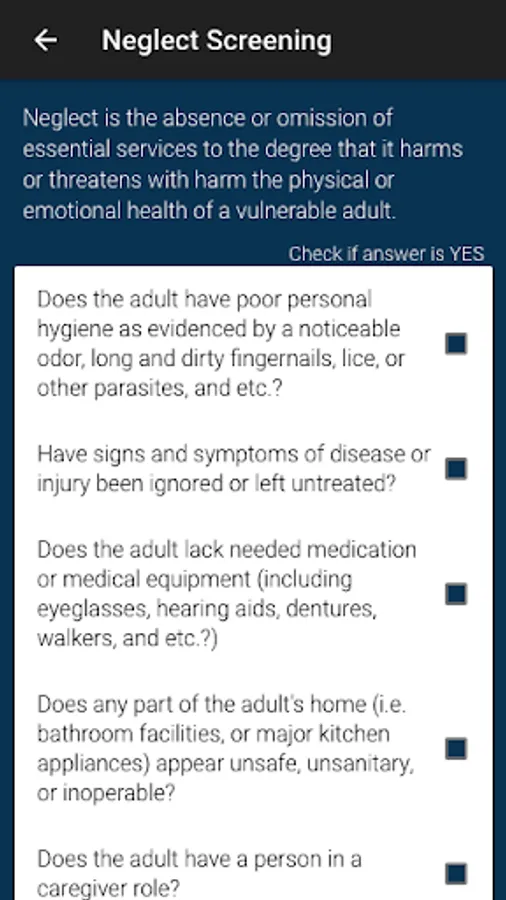 - Screening questions & algorithm for determining abuse, neglect, and exploitation