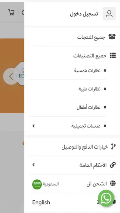 Online store to sell medical and sun glasses and provide medical insurance services via WhatsApp, delivery to all Saudi cities