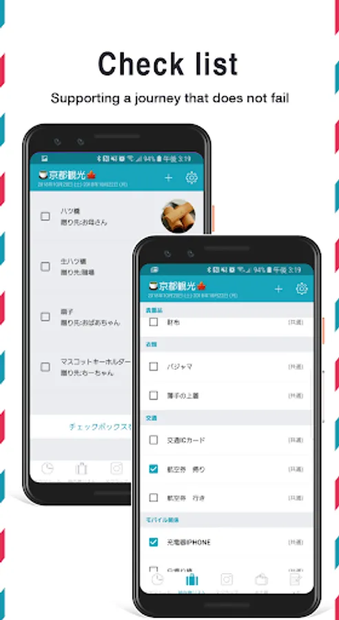 Manage travel schedules, belongings, photos, notes, souvenirs, and more with the app.