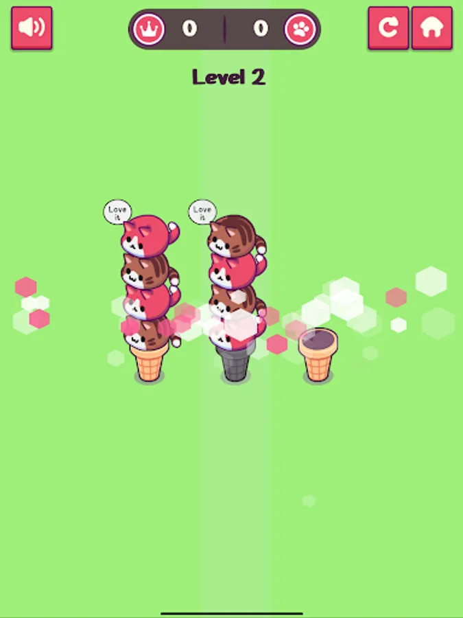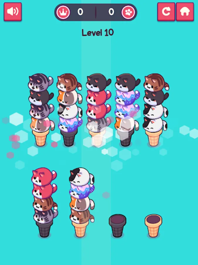 Ice Cream Cat β Color Stack, color sort game is an awesome cute cat game! Move the meowing nekomimi from one ice cream cone to the other and create color matching cat towers! If you love cute kittens, you will love our stacked kitty cats game. You will love to hear the munchkin cat meowing. Many people love to play with adorable charm kitty who will brighten up your day with their meowing sounds and fluffiness.