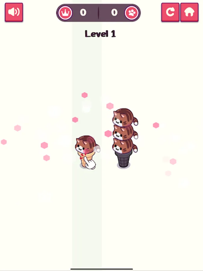 If youβve ever played color stack, color matching game, you can certainly play this kitty cat puzzle. The rules are super easy to understand and follow. However, completing these kitty cat challenges are not that easy. You only have one spare ice cream cone when moving the munchkin cats. Thatβs why you should think carefully when you build your cat tower.