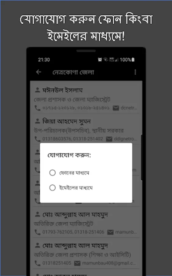 - এক মুহূর্তেই খুঁজে পাবেন বাংলাদেশের ৬৪টি জেলার সকল গুরুত্বপূর্ণ ফোন নম্বর এবং ইমেইল!