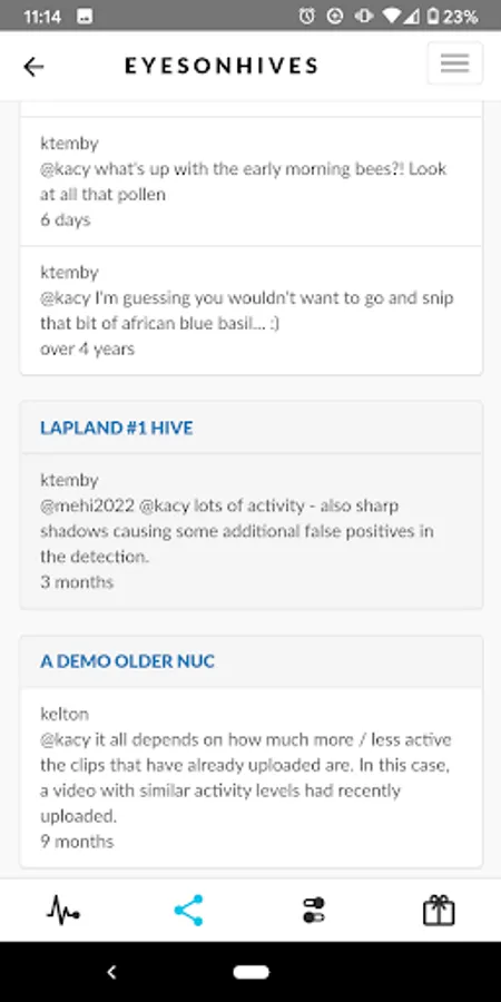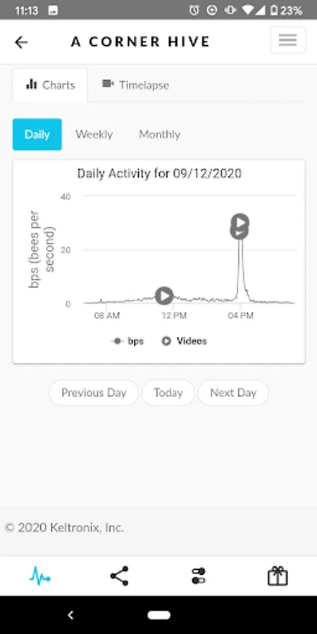 Eyesonhives Scout B measures bee flight activity in front of the hive. This App helps beekeepers browse the bee activity data and videos from the Scout B.