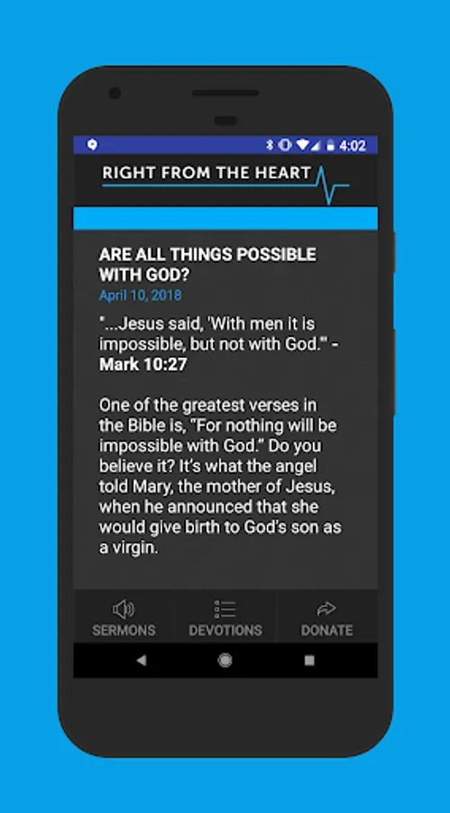 RFTH - This attractive and easy to use App offers mobile access to Right From The Heart Ministry’s popular One-Minute Daily Devotions PLUS streaming audio and video of the most current and most popular sermon series from Pastor Bryant Wright. You can also share your favorite Devotions or sermons via social media or email from within the App!