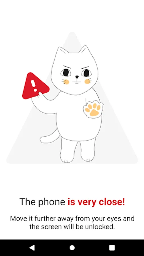 The application checks the distance from the phone screen to your face. If the distance from the screen to the face is closer than you configured, the phone screen will lock and ask you to remove the screen farther. After you fulfill the request, the screen is unlocked.