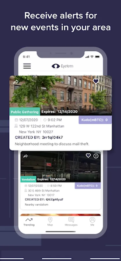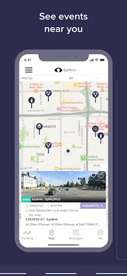 - Other nearby Eyetem users who are or were near the event are notified