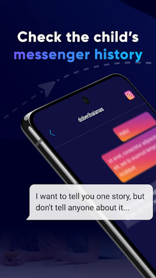 Check the messages your child sends on apps like Facebook Messenger, Snapchat, Instagram, Tik Tok, Whatsapp. Track your child's in-app message history to make sure your child is not being bullied, abused, etc. Rest assured that your child is protected and safe.