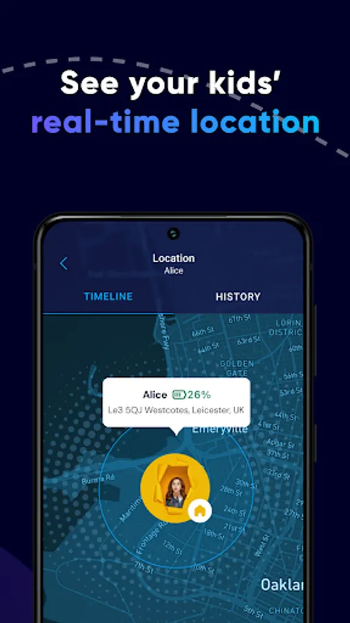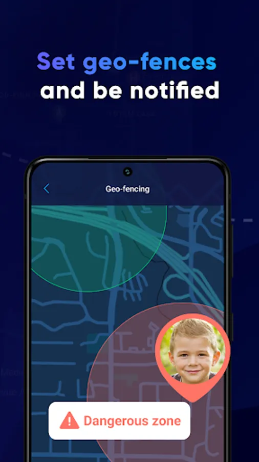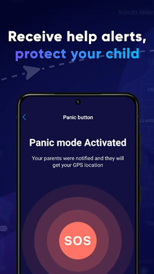 Phone location tracker equipped with a panic button. If your child needs your help or is in danger, they can press the panic button to ask you to "find me or find my device." You will receive a notification that the child is in danger. Our tracker app will show you the geolocation of your child and will help you come to the rescue in time.