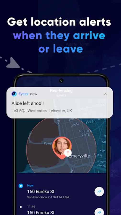 Set allowed and forbidden locations to get alerts about their movements. GPS tracker detects when your children enter areas that you have marked as inappropriate and inform you about it and shares the location of the kid with parents. Track when kids arrive and leave school, home, or other locations.