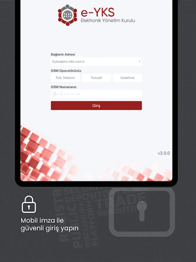 Note: This application is an application that only users who have purchased the e-YKS (Electronic Management Board System) program and registered in the system can log in.