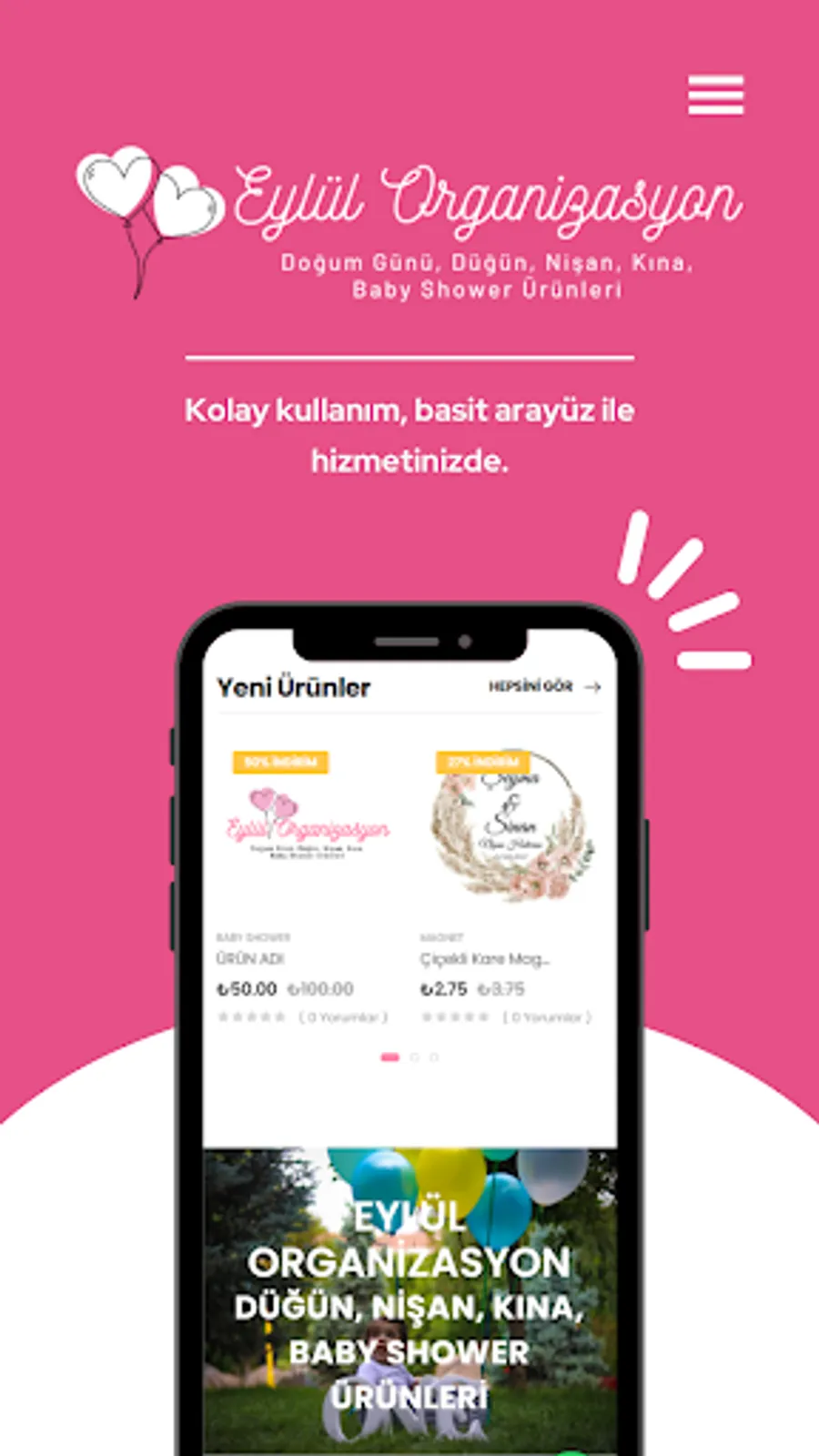 Eylül Organization, with its 10 years of experience, is a company that always produces high quality, increases its diversity day by day, and adopts development with technology as a goal and principle. Our company, which has been directing the organization sector since the day it was founded, serves its customers with its rich product variety, design products and products with high quality standards, with its two stores.